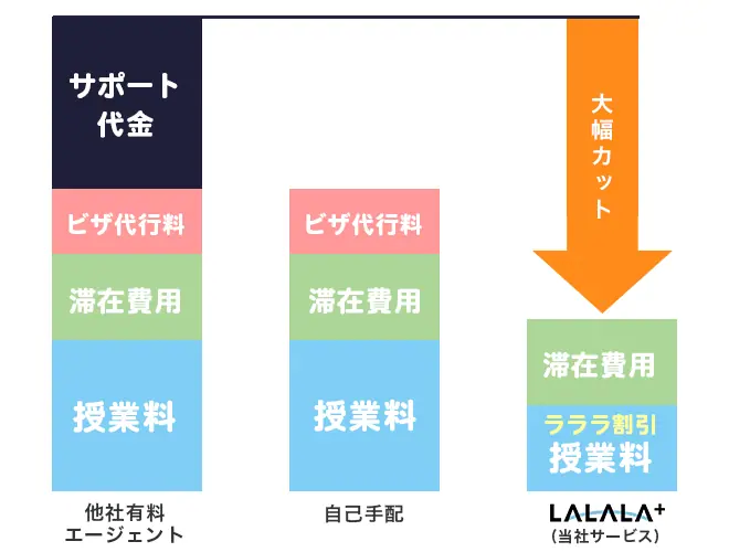 観光ビザの申請費用、航空券の代金、学校の授業料、留学保険の代金、食費や現地アルバイトで稼げる金額などをまとめました。生活費用の見積もりを依頼することもできます。